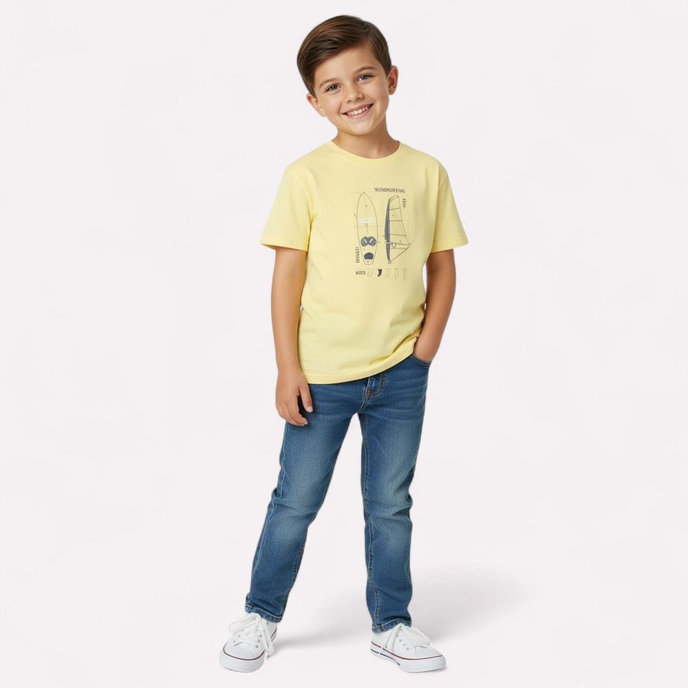 A camiseta infantil menino Kyly é confeccionada em meia malha 100% algodão, tecido leve, fresco e respirável, ideal para os dias de calor. A modelagem é confortável, com decote redondo e mangas curtas, pensada para liberdade de movimentos.