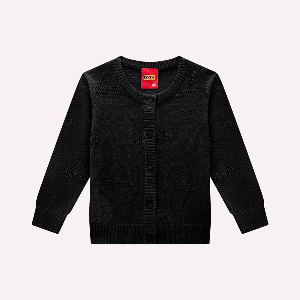 O casaco infantil menina Kyly é pura fofura e conforto para os dias mais frios! Feito em tricot macio e quentinho 50% algodão, 50% acrílico, ele abraça as pequenas com todo o aconchego que elas merecem. O grande destaque fica por conta das cerejas no tricot, que trazem um toque divertido e charmoso à peça.