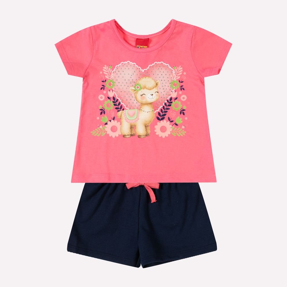 Um visual encantador para iluminar os dias mais divertidos! O conjunto infantil menina Kyly é confeccionado em 100% algodão, garantindo conforto, leveza e toque macio à pele delicada das pequenas. A blusa em meia malha, apresenta modelagem tradicional com caimento reto, ideal para proporcionar liberdade de movimento. O grande destaque é a estampa localizada super fofa, com um adorável bichinho rodeado por flores e um coração com aplicações de strass, que adicionam um brilho delicado e lúdico à peça.