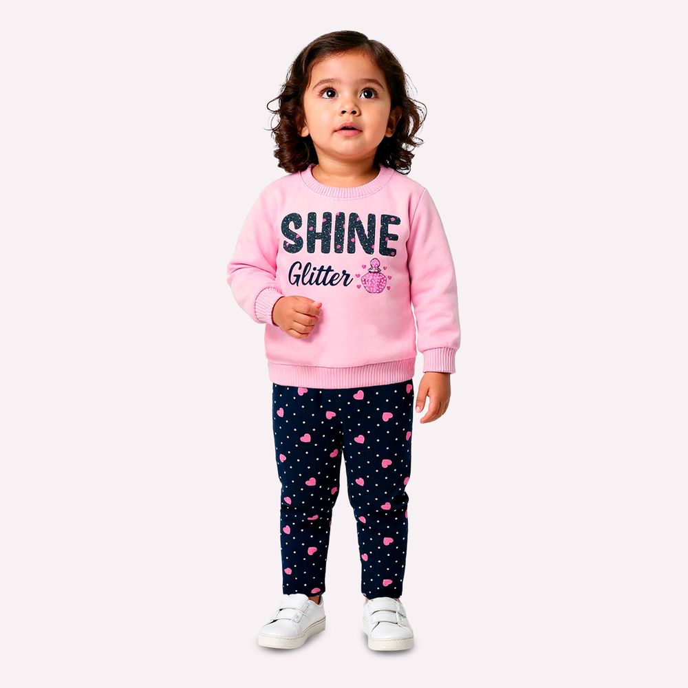 Charmoso e cheio de brilho, este conjunto infantil menina da Kyly foi pensado para iluminar os dias das pequenas com conforto e estilo. A combinação entre cores elegantes, detalhes delicados e modelagem aconchegante cria um visual encantador, perfeito para compor produções modernas e cheias de personalidade.