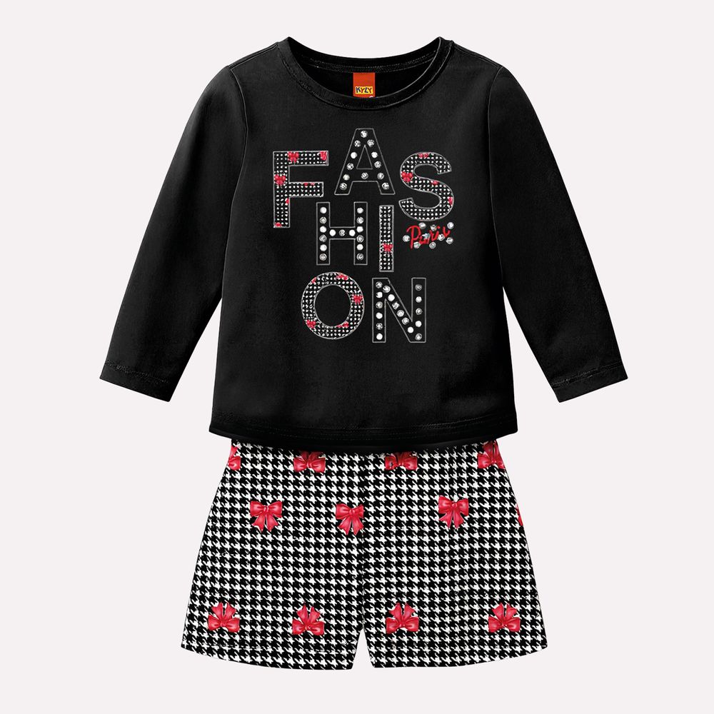O short complementa o conjunto com uma proposta moderna e leve. Confeccionado em moletom sem felpa 100% algodão, apresenta toque macio e agradável para o uso em diferentes momentos do dia. A estampa rotativa traz uma padronagem clássica acompanhada de delicados laços, criando uma composição visual harmoniosa e cheia de charme. A modelagem confortável garante ótimo caimento e liberdade de movimentos, enquanto o cós com elástico proporciona ajuste prático e seguro na cintura. Perfeito para passeios, encontros em família ou produções casuais cheias de estilo, este conjunto infantil menina Kyly combina tecidos confortáveis, modelagem pensada para o movimento e detalhes sofisticados que valorizam cada momento da infância.