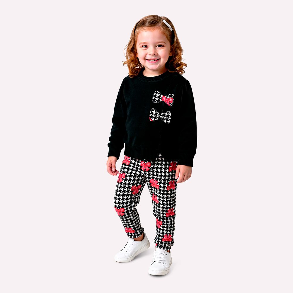 A legging complementa o conjunto com uma proposta prática e elegante. Confeccionada em molicotton peluciado, com composição de 96% algodão e 4% elastano, a peça oferece elasticidade e ajuste perfeito ao corpo, garantindo conforto e mobilidade para as atividades do dia a dia. A estampa rotativa traz um desenho clássico inspirado em padronagens elegantes, enriquecido por delicados laços que harmonizam perfeitamente com o detalhe do casaco. O cós com elástico proporciona ajuste seguro e confortável na cintura, tornando a peça ideal para acompanhar as pequenas em diferentes momentos. Versátil e encantador, este conjunto infantil menina Kyly é perfeito para passeios, encontros em família ou produções estilosas nos dias de meia-estação e inverno leve, unindo conforto térmico, acabamento de qualidade e um visual delicado que valoriza a infância.