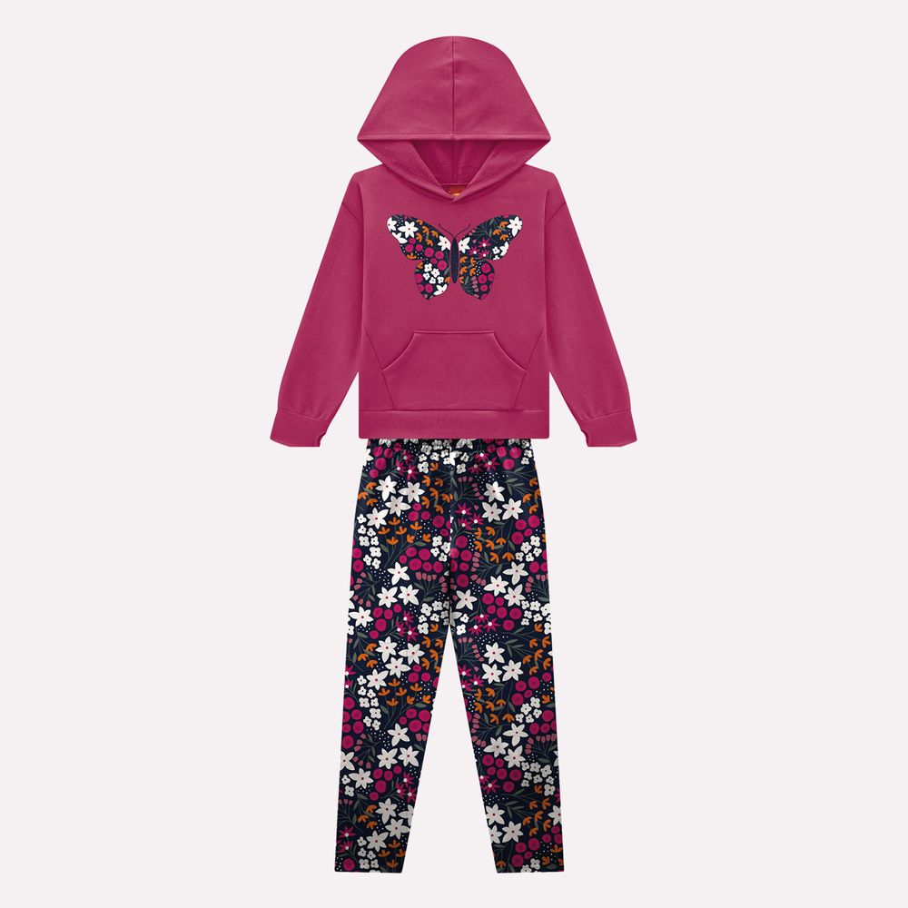 O casaco é confeccionado em moletom peluciado 100% algodão, oferecendo toque macio, conforto térmico e excelente respirabilidade para a meia-estação e dias mais fresquinhos. A modelagem confortável com capuz adiciona um charme casual e funcional à peça, enquanto os punhos e barra em ribana proporcionam melhor ajuste ao corpo. O destaque fica por conta da estampa localizada de borboleta, composta por uma rica padronagem com flores e elementos naturais que trazem profundidade visual e um acabamento encantador. O bolso frontal estilo canguru reforça a praticidade e o estilo esportivo da peça.