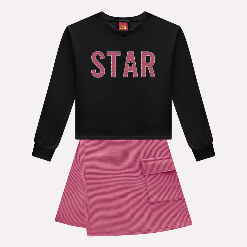 Moderno, delicado e cheio de estilo, este conjunto infantil menina da Kyly traz uma proposta encantadora que combina conforto e tendência em um visual elegante para as pequenas. A união de modelagem atual com detalhes cuidadosamente aplicados cria um look versátil e cheio de personalidade, perfeito para compor produções casuais com charme.
