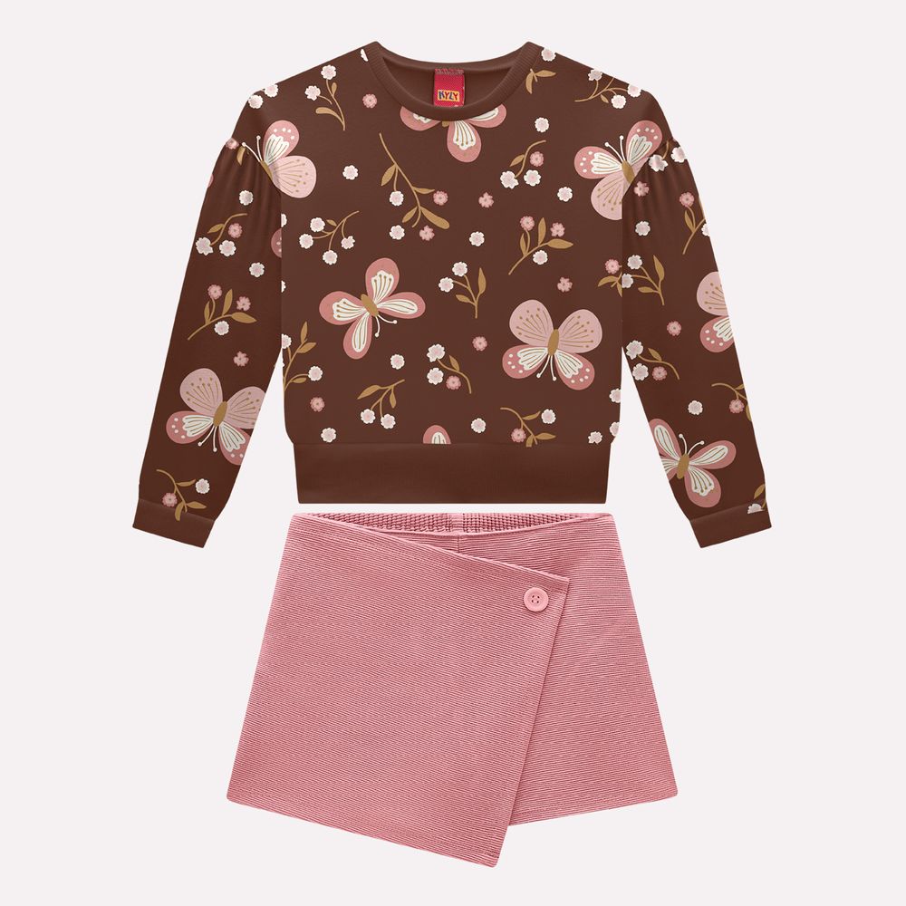 O short-saia em gorgurinho com 96% algodão e 4% elastano complementa o conjunto com elegância e funcionalidade. A modelagem combina a estética charmosa da saia com a segurança do short interno, permitindo liberdade de movimento para brincar com conforto. O tecido encorpado proporciona excelente caimento, enquanto o detalhe de botão decorativo acrescenta um acabamento delicado e sofisticado à peça. Ideal para compor looks casuais em meia-estação ou dias amenos, este conjunto infantil Kyly une conforto, estilo e liberdade de movimento, tornando-se uma escolha encantadora para acompanhar as aventuras do cotidiano.