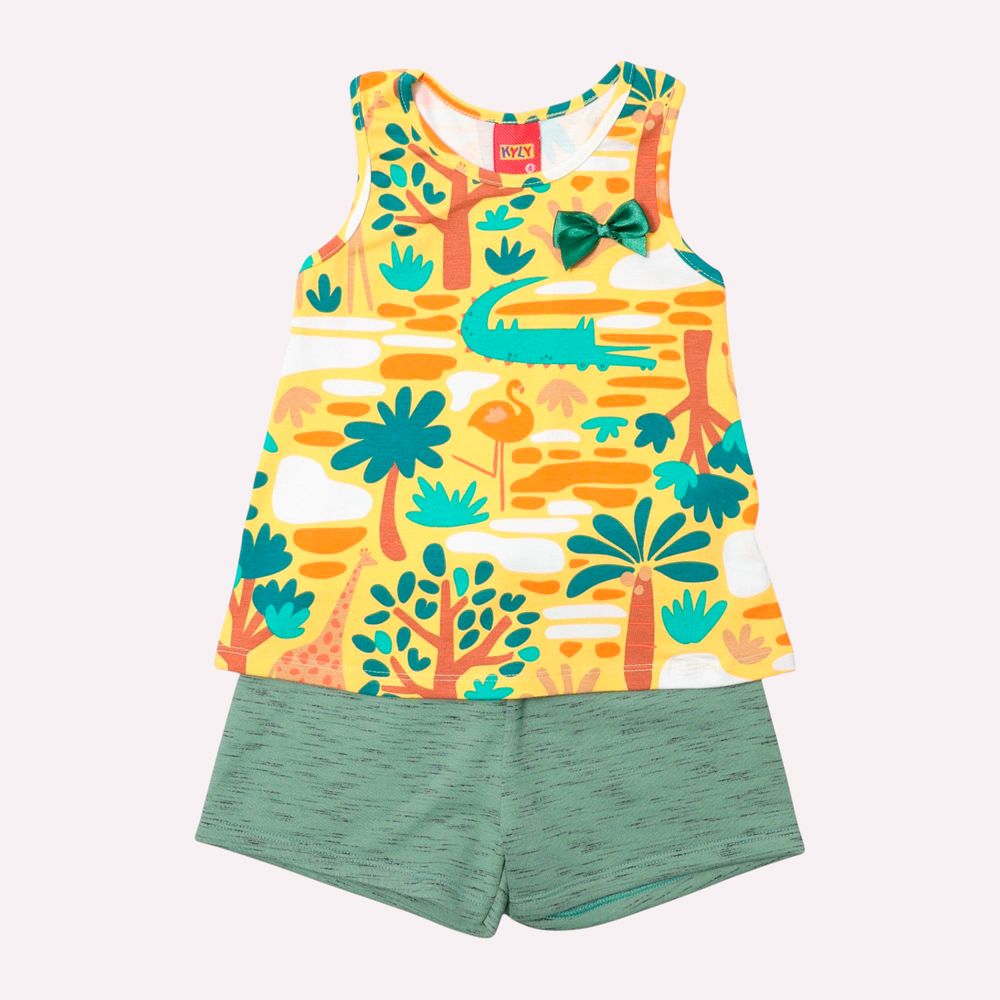 Para os aventureiros e amantes de animais, o conjunto infantil menina Kyly é o look ideal.