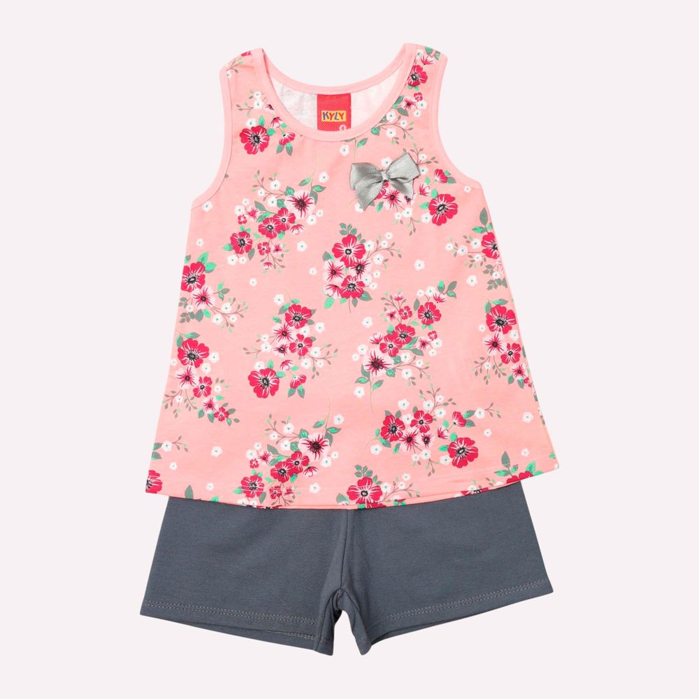 Um charme cheio de frescor! O conjunto infantil menina Kyly é confeccionada em malha 100% algodão, com modelagem godê e estampa vibrante de flores que transmite delicadeza. A peça é confortável, com decote redondo e decote nadador na parte posterior, além disso, apresenta laço decorativo próximo ao tórax. Perfeita para os dias de calor, garantindo bem-estar durante as brincadeiras.