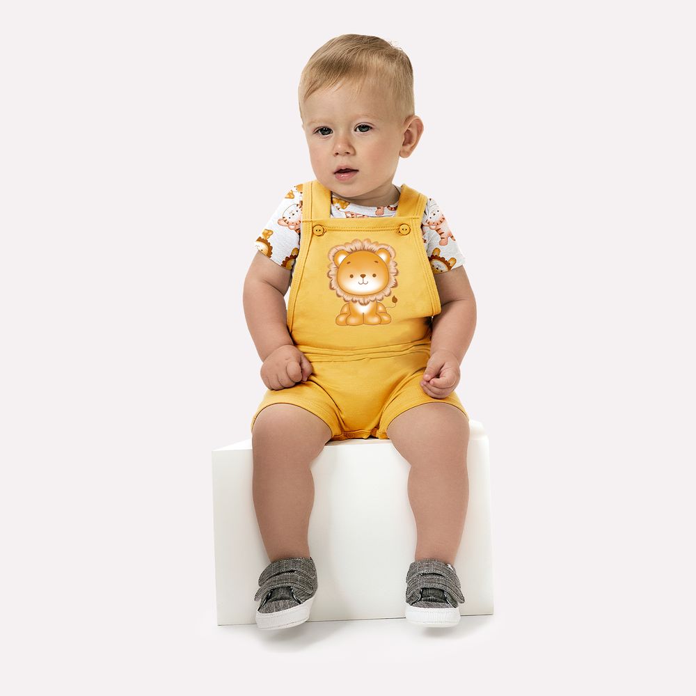 O conjunto bebê menino Kyly é a escolha perfeita para compor produções charmosas e confortáveis para os pequenos em qualquer ocasião. O body é confeccionado em cotton 95% algodão e 5% elastano, garantindo elasticidade e um ajuste perfeito ao corpo do bebê. Sua estampa rotativa divertida de bichinhos da selva, incluindo leões e tigres, traz cor e alegria à peça, enquanto a modelagem anatômica com ombros transpassados e entrepernas com botões de pressão facilita na hora de vestir e trocar.
