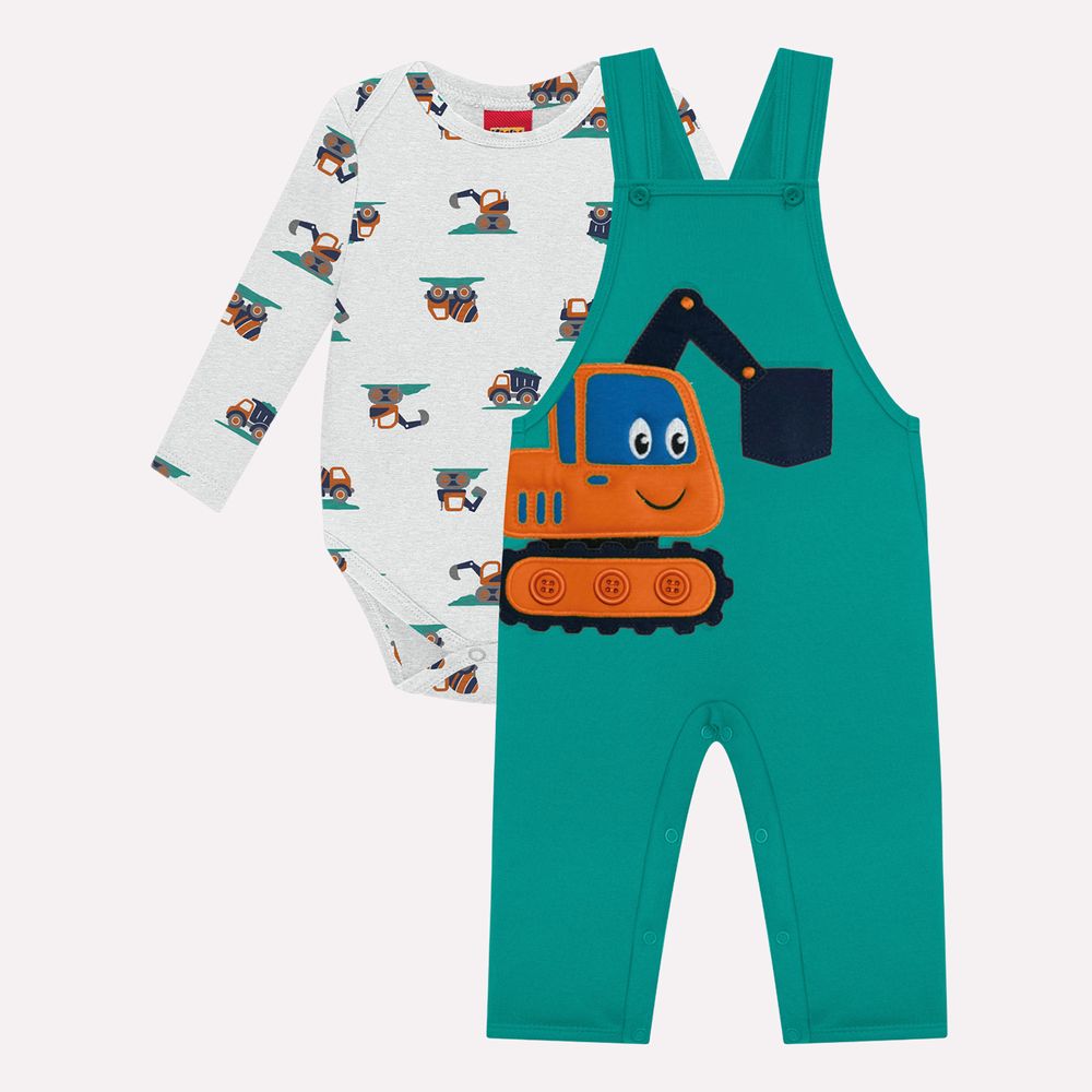 A jardineira bebê menino é produzida em moletom peluciado, com 94% algodão e 6% poliéster, garantindo aconchego e aquecimento suave para dias mais fresquinhos. Sua modelagem ampla proporciona mobilidade e conforto, enquanto as alças estruturadas e os botões reforçam a praticidade no vestir. O destaque fica por conta do bordado frontal com escavadeira, que adiciona textura e um toque lúdico ao visual, além da estampa rotativa que complementa o design com charme. Ideal para o dia a dia, passeios e momentos de descoberta, este conjunto infantil da Kyly combina conforto térmico, qualidade e um visual encantador que traduz a alegria da infância.