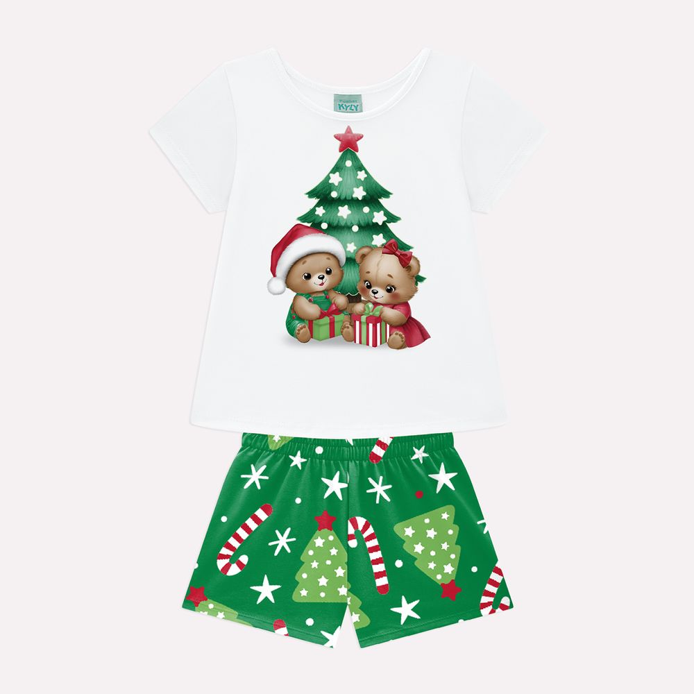 Um toque de magia para as noites mais encantadas do ano! O pijama infantil menina Kyly é confeccionado em meia malha 100% algodão, garantindo conforto, respirabilidade e um toque macio para um soninho tranquilo e cheio de sonhos natalinos.