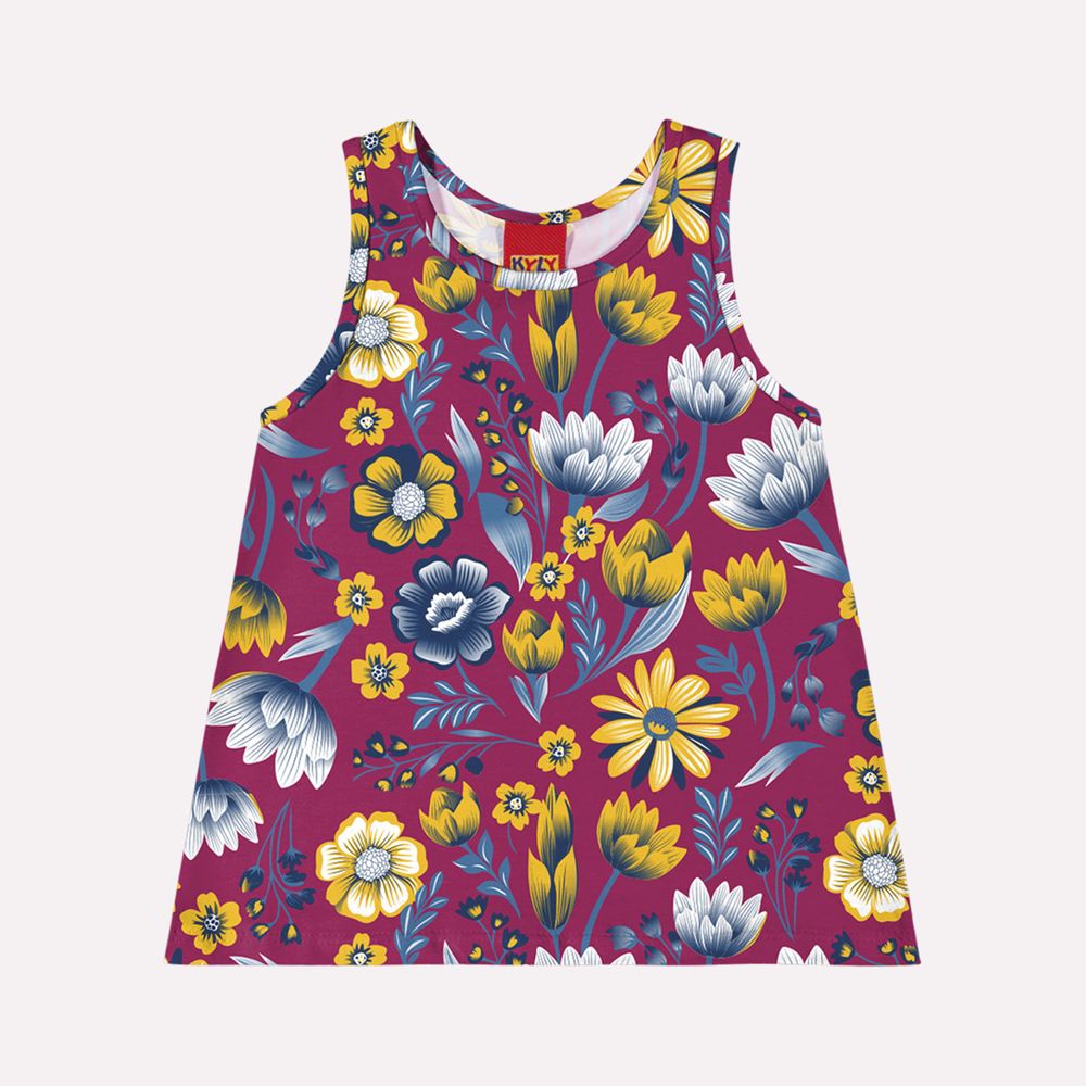 Regata infantil menina Kyly é confeccionada em meia malha 100% algodão.