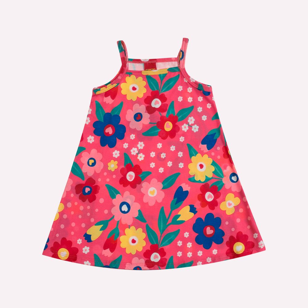 A beleza do vestido fica ainda mais evidente com a estampa rotativa exclusiva de flores e folhas em cores vivas, que enche a peça de personalidade e transmite a doçura da infância. Esse vestido é a escolha perfeita para quem busca uma peça alegre, confortável e cheia de charme para ocasiões especiais ou para colorir o dia a dia com delicadeza.