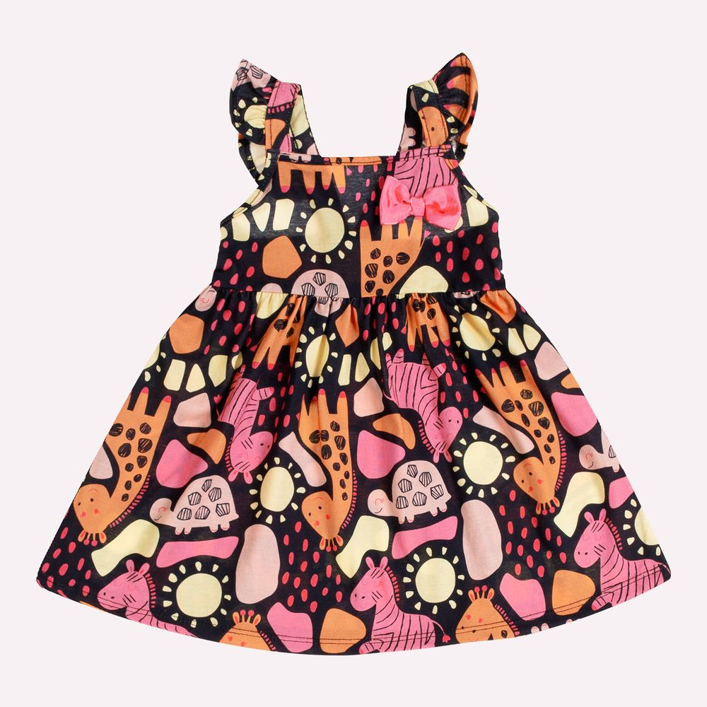 O vestido infantil menina Kyly é uma explosão de fofura e conforto. Confeccionado em meia malha 100% algodão. Com uma modelagem que une charme e praticidade, a peça apresenta um caimento fluido e volumoso que valoriza o visual infantil. A estampa rotativa com bichinhos divertidos e coloridos traz um ar lúdico e encantador à composição.