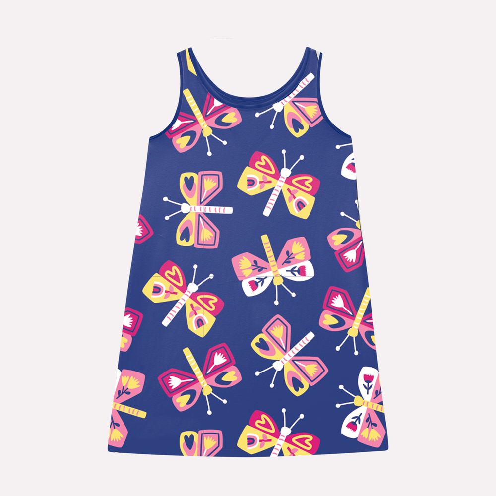 A modelagem traz um caimento soltinho que acompanha o movimento do corpo, enquanto decote redondo deixam o visual ainda mais fresquinho e moderno. A estampa de borboletas coloridas dá um toque lúdico e encantador, perfeita para quem adora um look divertido e cheio de vida. Um vestido que combina com dias de sol, sorrisos e muitas aventuras!