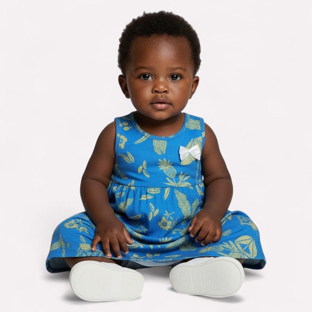 A modelagem superior regata garante leveza e liberdade para brincar, com caimento da saia godê e franzidos no tórax, a peça exibe laço decorativo.