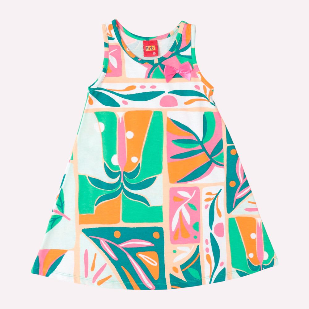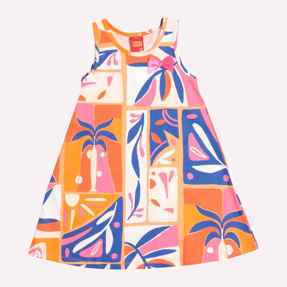 Inspirado no clima das praias tropicais, o vestido infantil Kyly é feito em meia malha 100% algodão, proporcionando frescor e conforto.