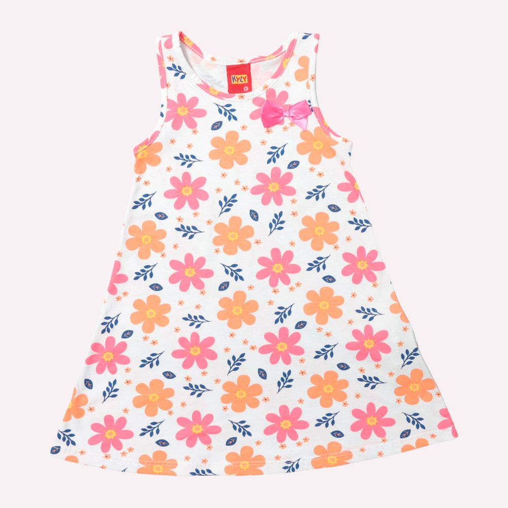 Encanto em cada detalhe! O vestido infantil Kyly é confeccionado em meia malha 100% algodão, garantindo frescor e maciez para os dias mais quentes. A modelagem regata é leve e soltinha, com caimento evasê proporcionando liberdade para brincar.