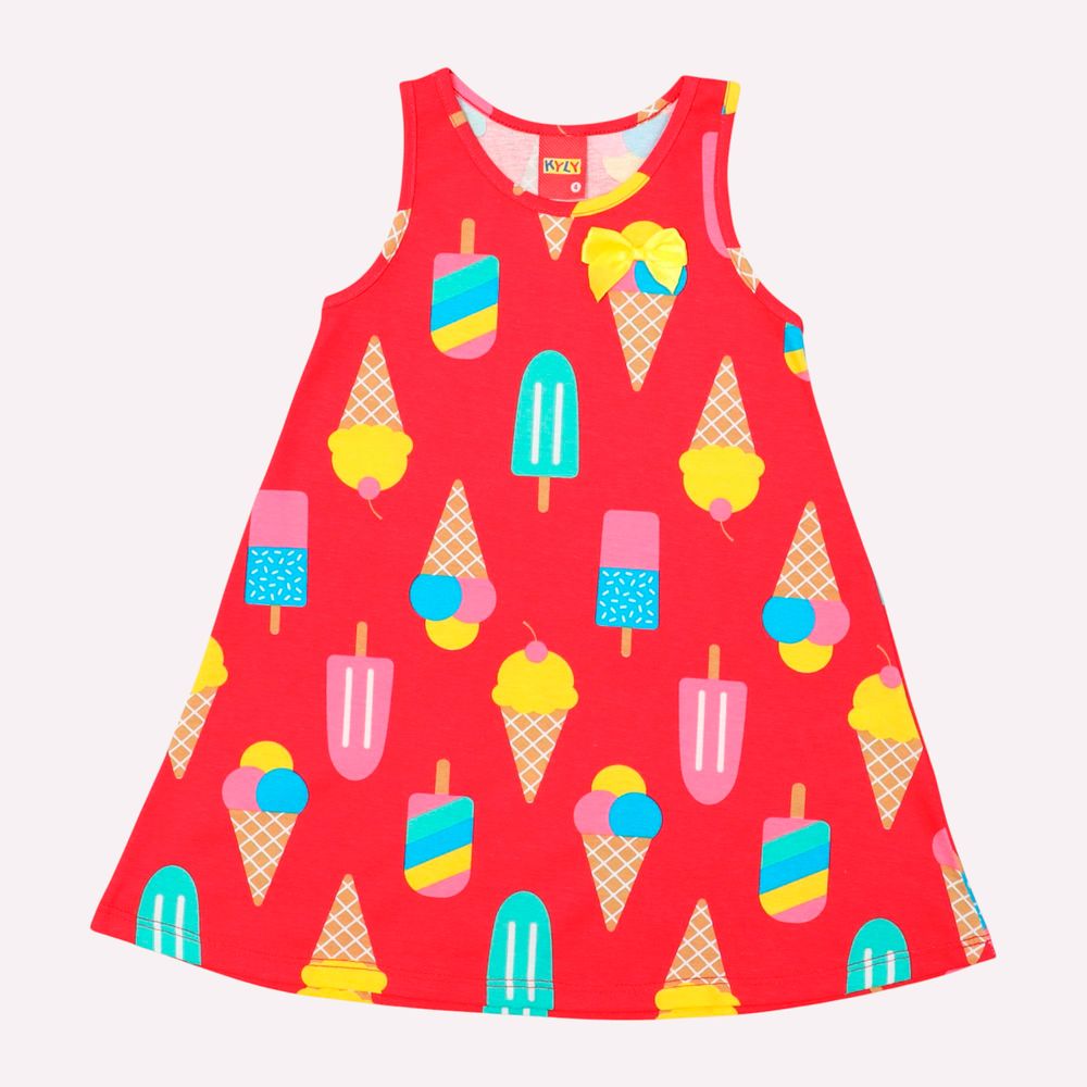 Diversão garantida com muito estilo! Esse vestido infantil menina Kyly é feito em meia malha 100% algodão, proporcionando frescor e suavidade. A modelagem evasê soltinha com bainha delicada é prática para brincar e se movimentar.